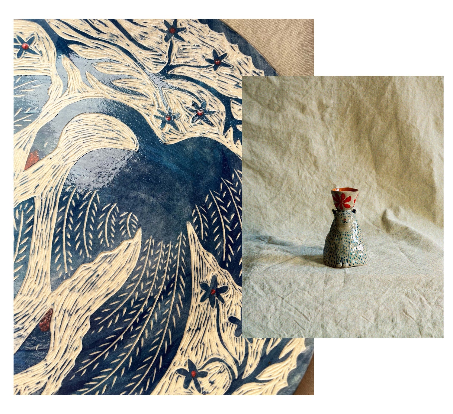 Based in Lancashire Emily is a potter who creates sculptural stoneware forms and functional pieces inspired by folk art, vintage design.