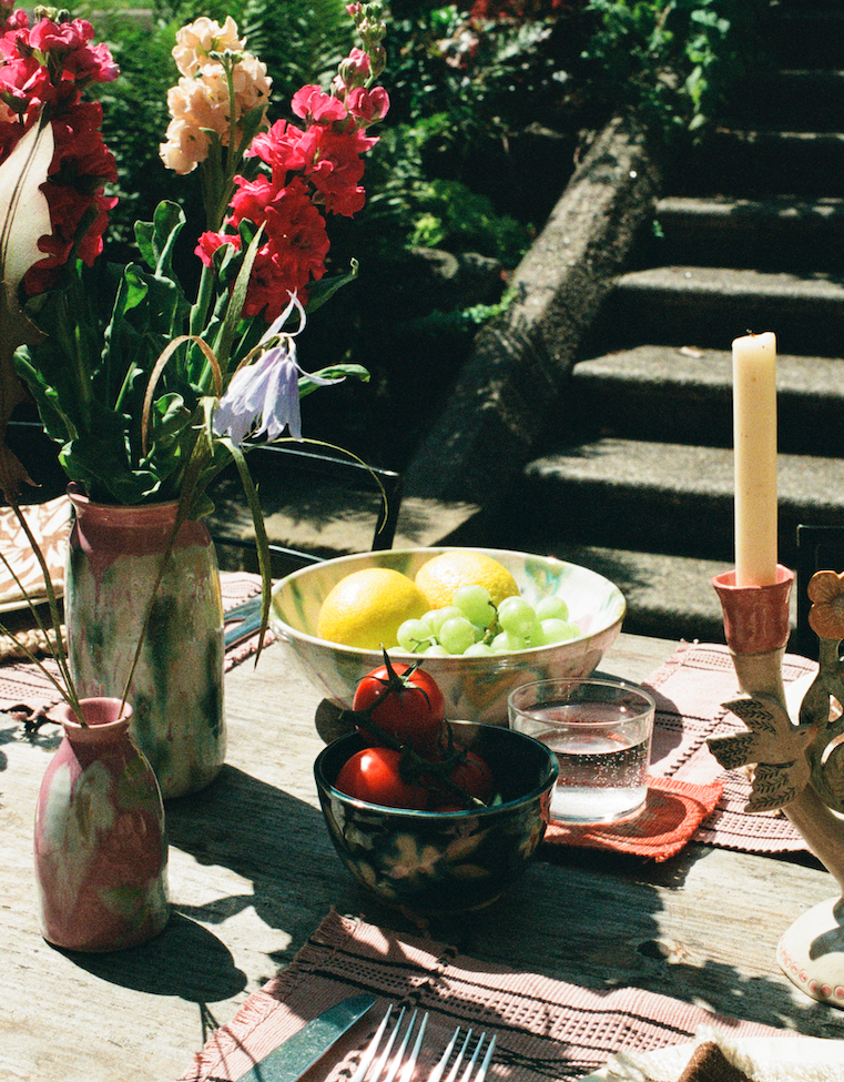 Kat creates playful, wheel-thrown pottery, designed to bring joy to everyday rituals and this porridge bowl is the perfect way to start your day. Each piece Kat creates is thoughtfully crafted from white stoneware and hand-decorated - this bowl is painted storm blue with cream flowers.