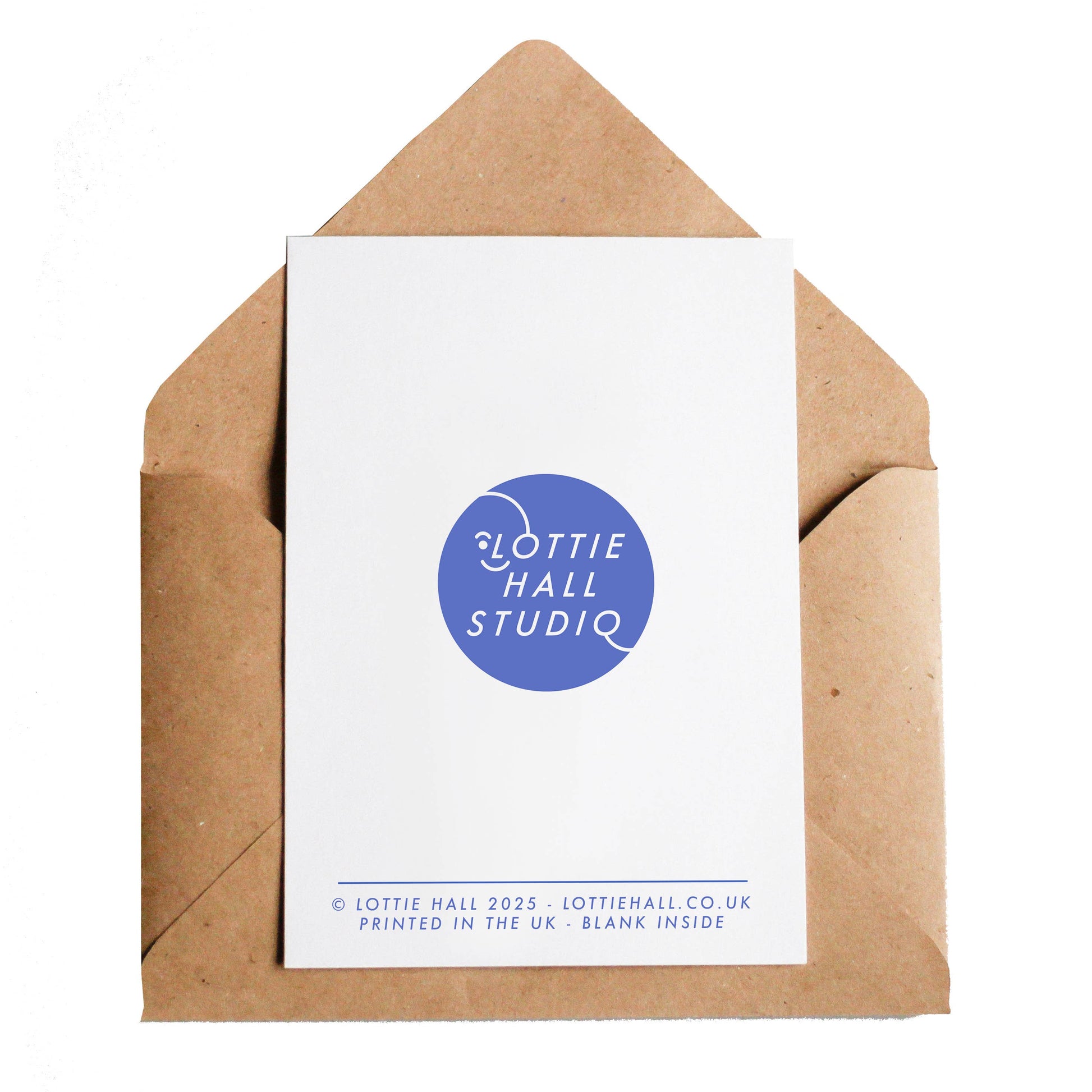 Printed on 300gsm card stock with a slight texture. Blank inside for your own words. Comes with a recycled brown envelope, in a biodegradable cellophane pouch.