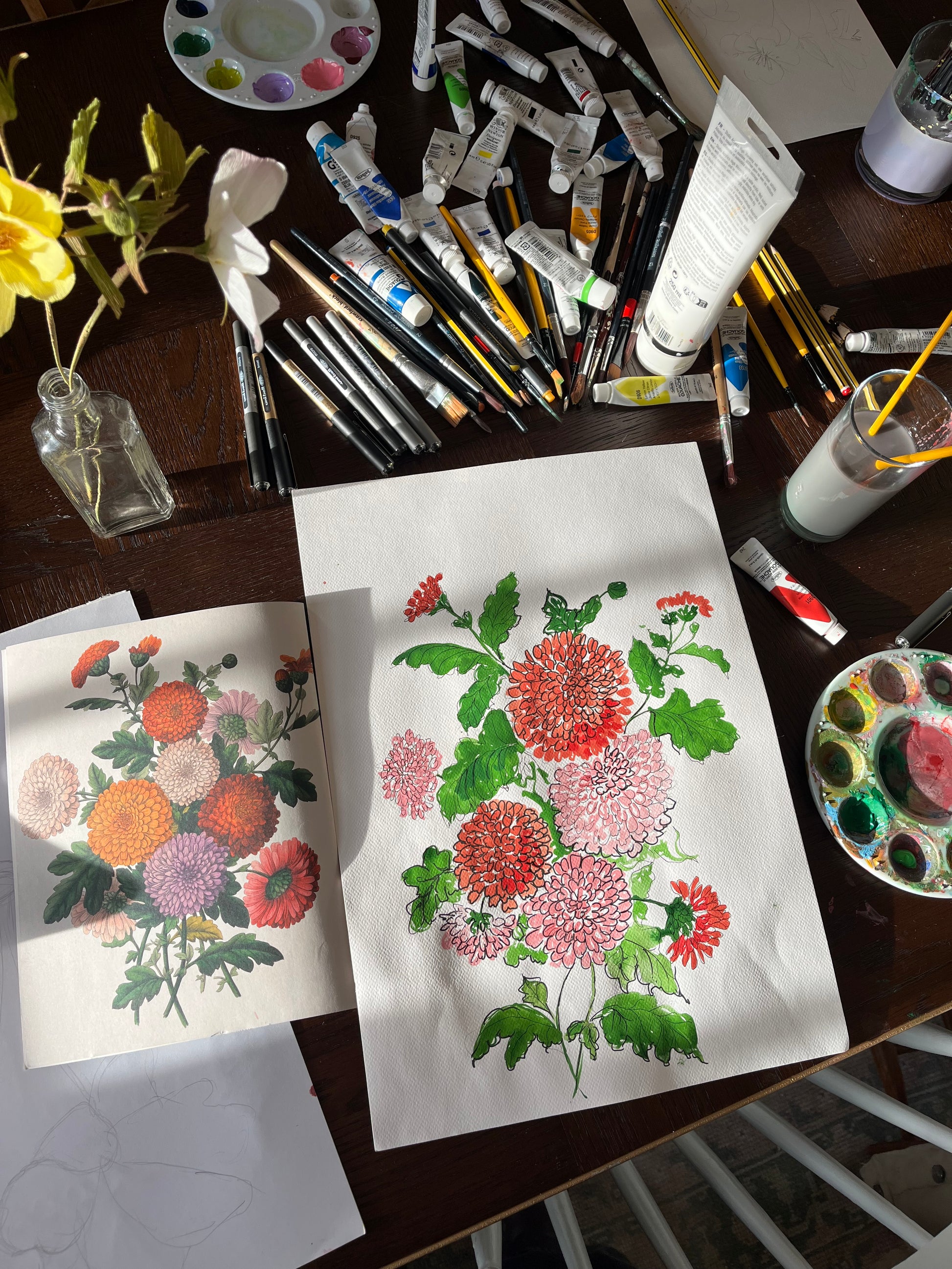 ln each session Bethany will guide you through various painting techniques and mediums from watercolour, to gouache to inks, sharing tips on colour, pattern, and design before giving you the chance to create your own expressive artwork to take home. This the perfect opportunity to explore painting in a fun, no-pressure environment that’s all about experimentation and enjoyment.